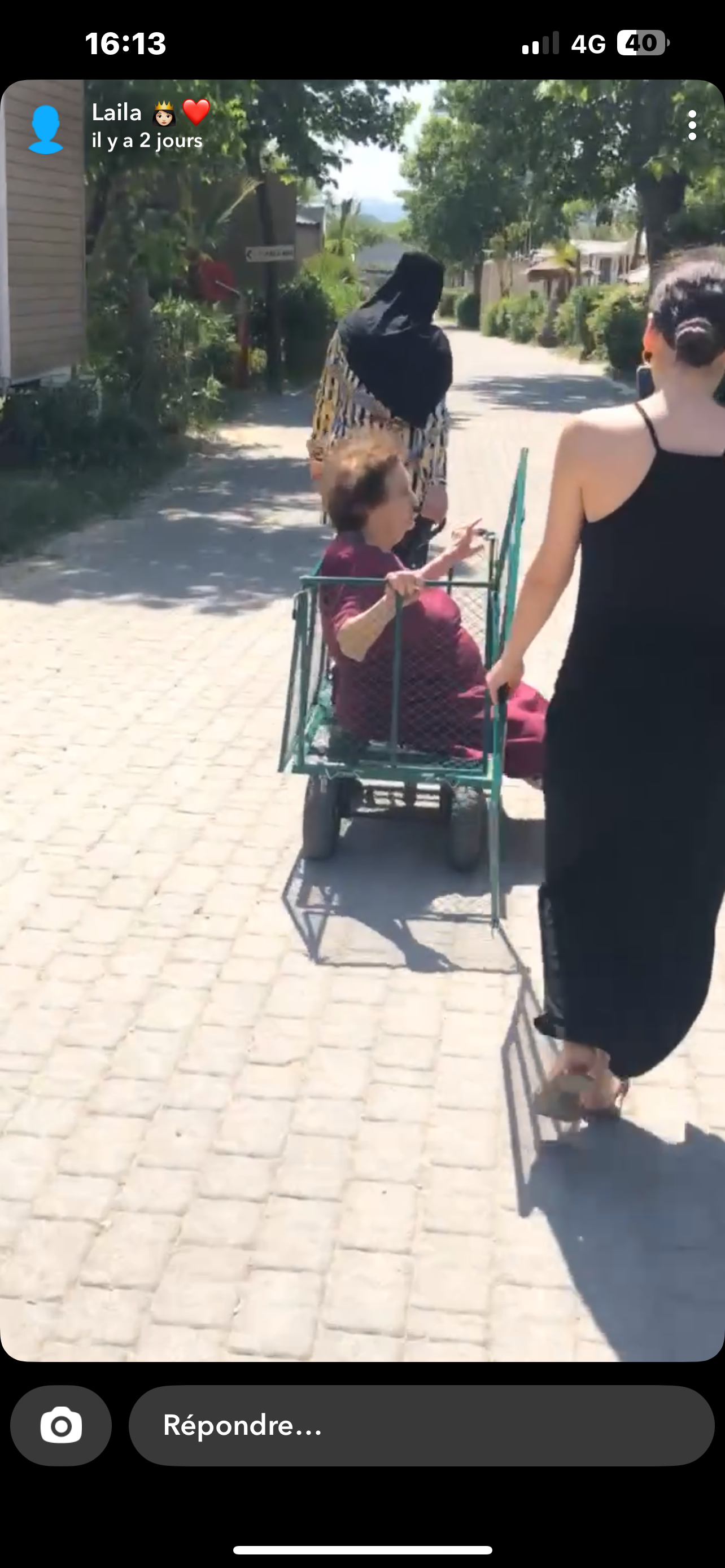 " Repose en paix tata, tu nous manquera ❤️ je garderais en mémoire tout les moments passé ensemble et plus particulièrement le weekend passé au camping à st tropez, qu’est ce qu’on avez rigolé quand on t’a mise dans le chariot pour t’emmener au bungalow ou le jour où on est allez manger une glace avec Zohra "